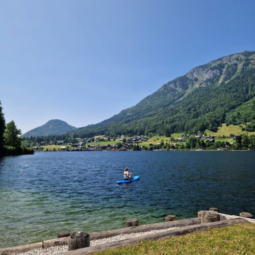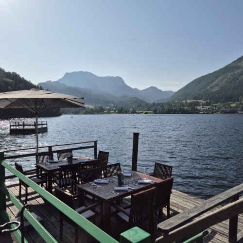 De Altausseer See is glashelder en transparant. Het water heeft een iets donkerblauwe kleur. Daarom wordt de Altaussee ook wel de “donkerblauwe inktpot” genoemd. Drink een drankje bij Strandcafe Ataussee.